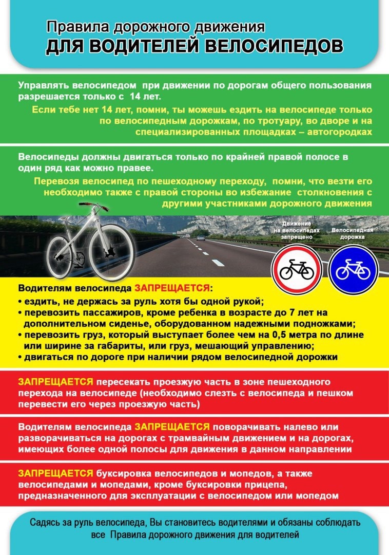 Катание на велосипеде требует повышенного внимания и соблюдения следующих правил: