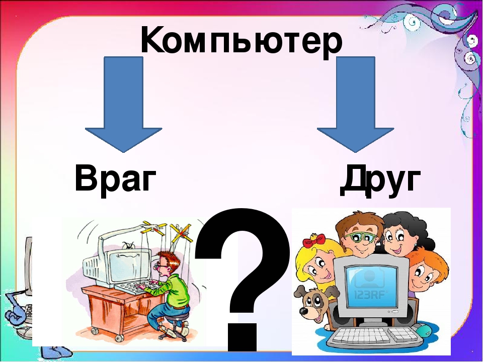 Вопросы компьютеризации, влияние компьютера на здоровье человека являются одной из важных проблем современности. Компьютер хоть и облегчает человеку жизнь, но в то же время может вызвать серьезную зависимость. И особенно уязвимы в этом плане дети, которые еще не сформировались как личности и легко поддаются пагубному влиянию. Компьютер вытесняет из жизни многих детей чтение книг, прогулки, спорт и реальное общение, а у некоторых подростков наблюдаются признаки зависимости от компьютера, Интернета или компьютерных игр. Нужно помнить, что компьютер влияет на все биологические характеристики организма человека, и в первую очередь, на его физическое и психическое здоровье. Возникает Вопрос: компьютер – друг или враг здоровью?