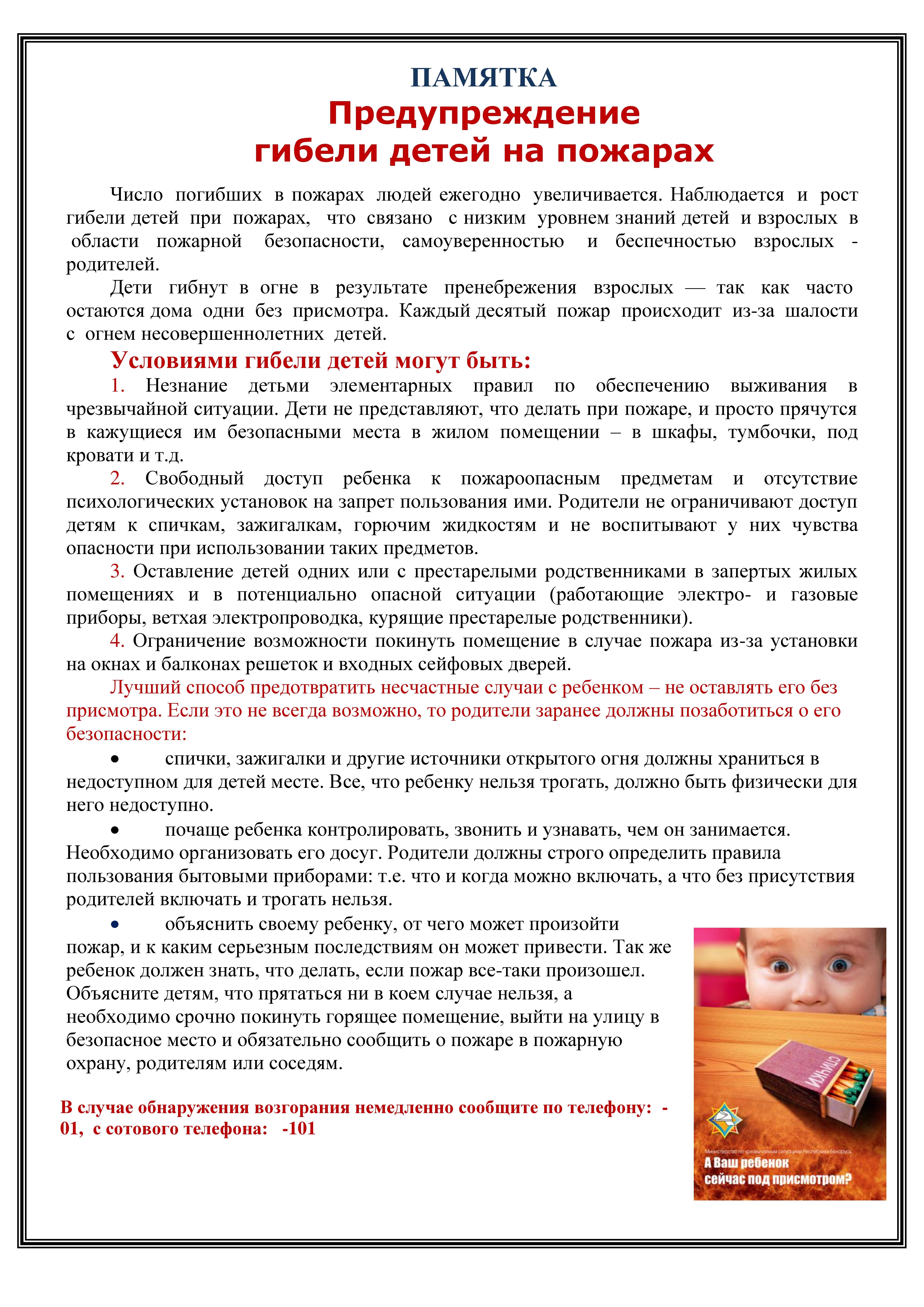 Памятка "Предупреждение гибели детей на пожарах"