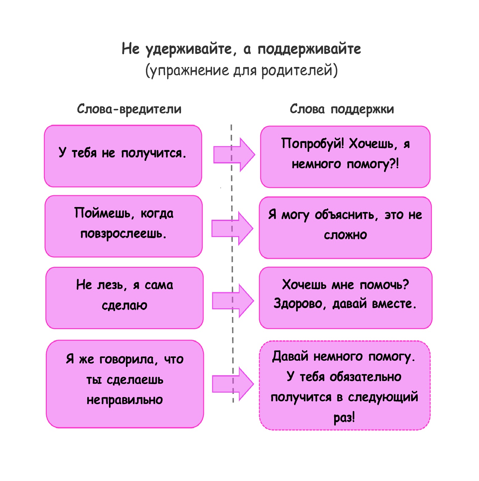 ⠀Если вся задача не может быть выполнена ребенком, постарайтесь выделить какую-то часть, которая ему посильна. Если он делится планами, просто скажите: «Попробуй!»