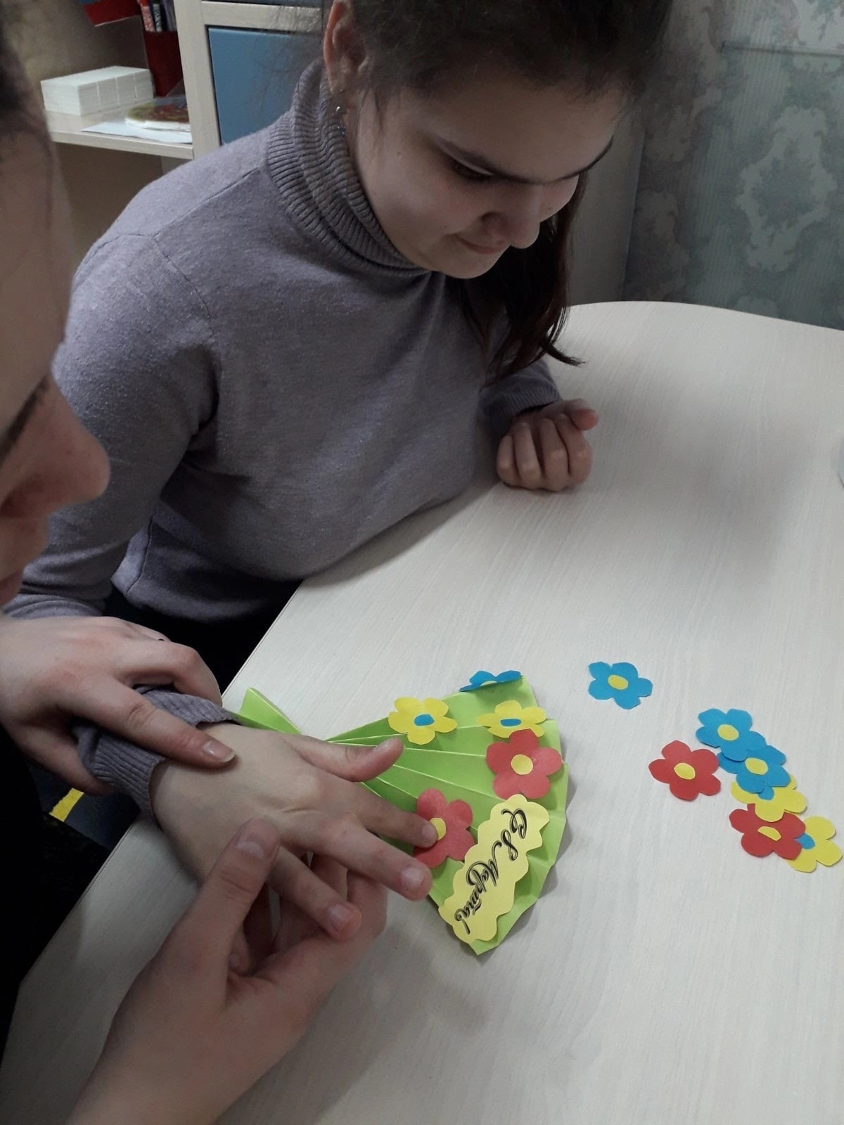 В ходе занятия дети были ознакомлены с историей праздника 8 марта. Каждый ребенок рассказал о своем самом близком человеке — маме, бабушке. Ребята с энтузиазмом и увлечением создавали поделки своими руками, по шаблону размечали детали, работали с различными материалами, а помогали создавать красоту социальный педагог Шермердинова Юлия Кафиловна и педагог-психолог Гукасян Офик Варужановна.