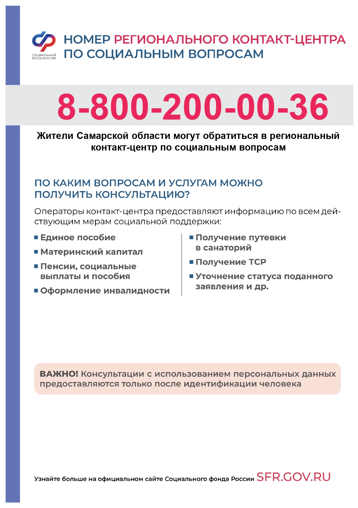 Об изменении регионального номера контакт-центра ОСФР по Самарской области